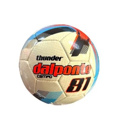 es un balón de fútbol de la marca Dalponte, diseñado con una construcción termosellada y recubrimiento de poliuretano (PU) para uso profesional en campos de césped....